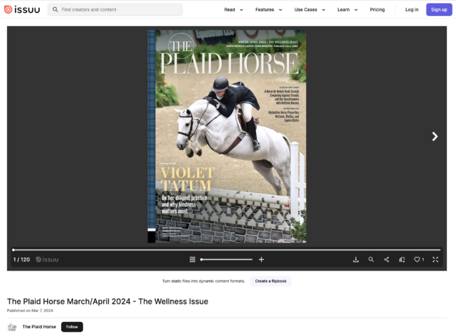 VIOLET TATUM The standout junior rider on her diligent practice, show ring milestones – and why kindness matters most IT’S HARD NOT TO NOTICE VIOLET TATUM. Just 15 years old, the California junior rider excels in all three rings. She’s won tricolors at Indoors and Junior Hunter Finals, and she piloted For Fun to USEF…